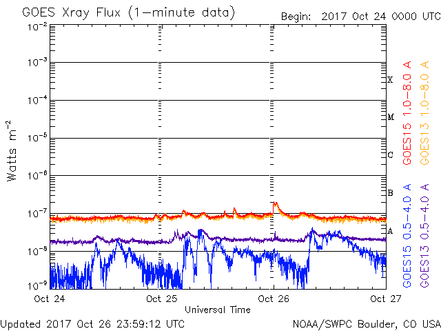De operationele data in de bovenstaande grafiek werd aangepast om de schaalfactor te verwijderen die werd toegepast door het Space Weather Prediction Center (SWPC). Vanwege de SWPC-schaalfactor in de operationele data werden de zonnevlammen 42% kleiner gerapporteerd dan deze in de wetenschappelijke data. De schaalfactor werd ook verwijderd uit de lijst met zonnevlammen om de werkelijke fysieke eenheden weer te geven.