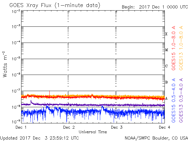 De operationele data in de bovenstaande grafiek werd aangepast om de schaalfactor te verwijderen die werd toegepast door het Space Weather Prediction Center (SWPC). Vanwege de SWPC-schaalfactor in de operationele data werden de zonnevlammen 42% kleiner gerapporteerd dan deze in de wetenschappelijke data. De schaalfactor werd ook verwijderd uit de lijst met zonnevlammen om de werkelijke fysieke eenheden weer te geven.