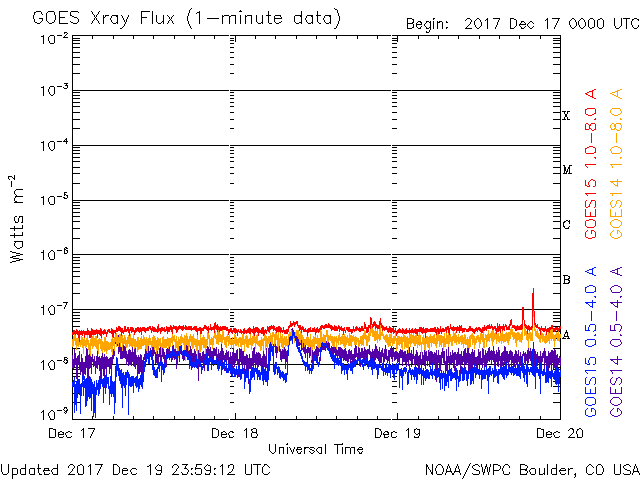 De operationele data in de bovenstaande grafiek werd aangepast om de schaalfactor te verwijderen die werd toegepast door het Space Weather Prediction Center (SWPC). Vanwege de SWPC-schaalfactor in de operationele data werden de zonnevlammen 42% kleiner gerapporteerd dan deze in de wetenschappelijke data. De schaalfactor werd ook verwijderd uit de lijst met zonnevlammen om de werkelijke fysieke eenheden weer te geven.