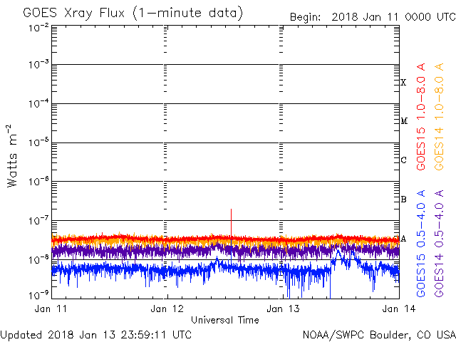De operationele data in de bovenstaande grafiek werd aangepast om de schaalfactor te verwijderen die werd toegepast door het Space Weather Prediction Center (SWPC). Vanwege de SWPC-schaalfactor in de operationele data werden de zonnevlammen 42% kleiner gerapporteerd dan deze in de wetenschappelijke data. De schaalfactor werd ook verwijderd uit de lijst met zonnevlammen om de werkelijke fysieke eenheden weer te geven.