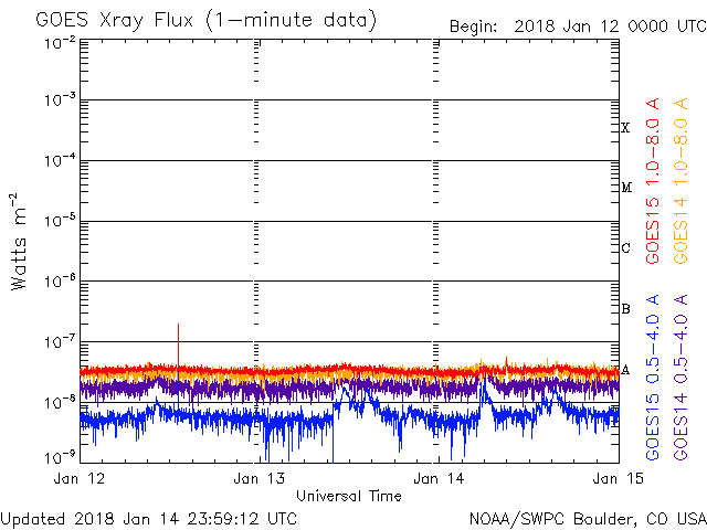 De operationele data in de bovenstaande grafiek werd aangepast om de schaalfactor te verwijderen die werd toegepast door het Space Weather Prediction Center (SWPC). Vanwege de SWPC-schaalfactor in de operationele data werden de zonnevlammen 42% kleiner gerapporteerd dan deze in de wetenschappelijke data. De schaalfactor werd ook verwijderd uit de lijst met zonnevlammen om de werkelijke fysieke eenheden weer te geven.