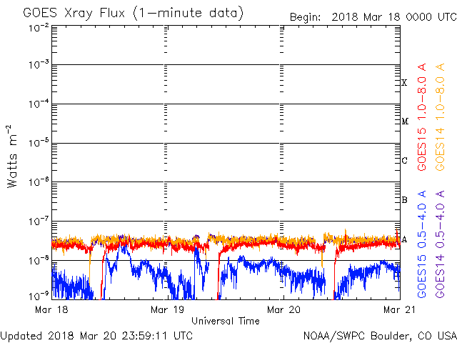De operationele data in de bovenstaande grafiek werd aangepast om de schaalfactor te verwijderen die werd toegepast door het Space Weather Prediction Center (SWPC). Vanwege de SWPC-schaalfactor in de operationele data werden de zonnevlammen 42% kleiner gerapporteerd dan deze in de wetenschappelijke data. De schaalfactor werd ook verwijderd uit de lijst met zonnevlammen om de werkelijke fysieke eenheden weer te geven.