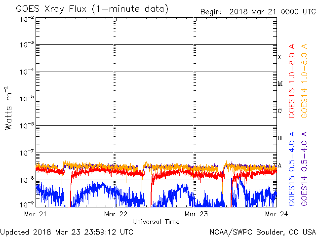 De operationele data in de bovenstaande grafiek werd aangepast om de schaalfactor te verwijderen die werd toegepast door het Space Weather Prediction Center (SWPC). Vanwege de SWPC-schaalfactor in de operationele data werden de zonnevlammen 42% kleiner gerapporteerd dan deze in de wetenschappelijke data. De schaalfactor werd ook verwijderd uit de lijst met zonnevlammen om de werkelijke fysieke eenheden weer te geven.