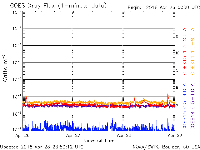 De operationele data in de bovenstaande grafiek werd aangepast om de schaalfactor te verwijderen die werd toegepast door het Space Weather Prediction Center (SWPC). Vanwege de SWPC-schaalfactor in de operationele data werden de zonnevlammen 42% kleiner gerapporteerd dan deze in de wetenschappelijke data. De schaalfactor werd ook verwijderd uit de lijst met zonnevlammen om de werkelijke fysieke eenheden weer te geven.