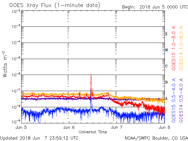 De operationele data in de bovenstaande grafiek werd aangepast om de schaalfactor te verwijderen die werd toegepast door het Space Weather Prediction Center (SWPC). Vanwege de SWPC-schaalfactor in de operationele data werden de zonnevlammen 42% kleiner gerapporteerd dan deze in de wetenschappelijke data. De schaalfactor werd ook verwijderd uit de lijst met zonnevlammen om de werkelijke fysieke eenheden weer te geven.