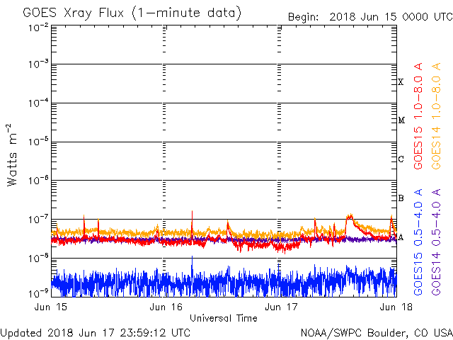 De operationele data in de bovenstaande grafiek werd aangepast om de schaalfactor te verwijderen die werd toegepast door het Space Weather Prediction Center (SWPC). Vanwege de SWPC-schaalfactor in de operationele data werden de zonnevlammen 42% kleiner gerapporteerd dan deze in de wetenschappelijke data. De schaalfactor werd ook verwijderd uit de lijst met zonnevlammen om de werkelijke fysieke eenheden weer te geven.