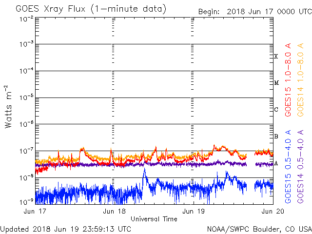 De operationele data in de bovenstaande grafiek werd aangepast om de schaalfactor te verwijderen die werd toegepast door het Space Weather Prediction Center (SWPC). Vanwege de SWPC-schaalfactor in de operationele data werden de zonnevlammen 42% kleiner gerapporteerd dan deze in de wetenschappelijke data. De schaalfactor werd ook verwijderd uit de lijst met zonnevlammen om de werkelijke fysieke eenheden weer te geven.