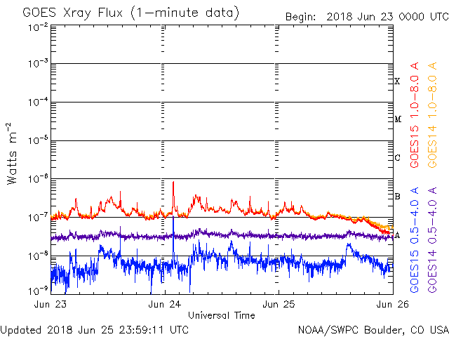 De operationele data in de bovenstaande grafiek werd aangepast om de schaalfactor te verwijderen die werd toegepast door het Space Weather Prediction Center (SWPC). Vanwege de SWPC-schaalfactor in de operationele data werden de zonnevlammen 42% kleiner gerapporteerd dan deze in de wetenschappelijke data. De schaalfactor werd ook verwijderd uit de lijst met zonnevlammen om de werkelijke fysieke eenheden weer te geven.