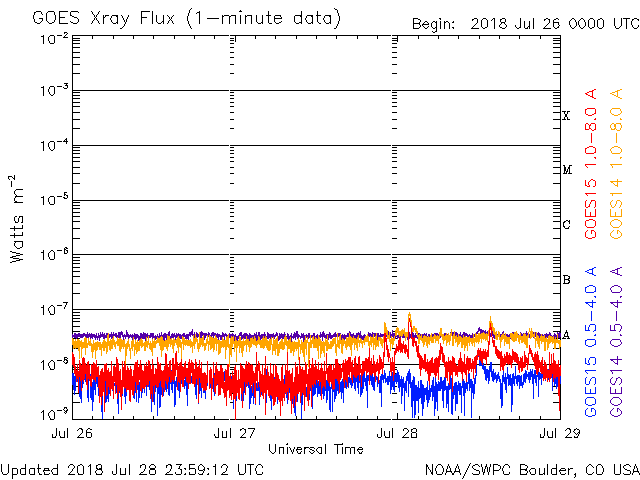 De operationele data in de bovenstaande grafiek werd aangepast om de schaalfactor te verwijderen die werd toegepast door het Space Weather Prediction Center (SWPC). Vanwege de SWPC-schaalfactor in de operationele data werden de zonnevlammen 42% kleiner gerapporteerd dan deze in de wetenschappelijke data. De schaalfactor werd ook verwijderd uit de lijst met zonnevlammen om de werkelijke fysieke eenheden weer te geven.