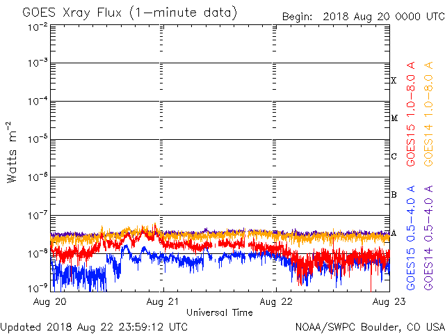 De operationele data in de bovenstaande grafiek werd aangepast om de schaalfactor te verwijderen die werd toegepast door het Space Weather Prediction Center (SWPC). Vanwege de SWPC-schaalfactor in de operationele data werden de zonnevlammen 42% kleiner gerapporteerd dan deze in de wetenschappelijke data. De schaalfactor werd ook verwijderd uit de lijst met zonnevlammen om de werkelijke fysieke eenheden weer te geven.