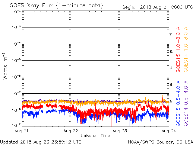 De operationele data in de bovenstaande grafiek werd aangepast om de schaalfactor te verwijderen die werd toegepast door het Space Weather Prediction Center (SWPC). Vanwege de SWPC-schaalfactor in de operationele data werden de zonnevlammen 42% kleiner gerapporteerd dan deze in de wetenschappelijke data. De schaalfactor werd ook verwijderd uit de lijst met zonnevlammen om de werkelijke fysieke eenheden weer te geven.