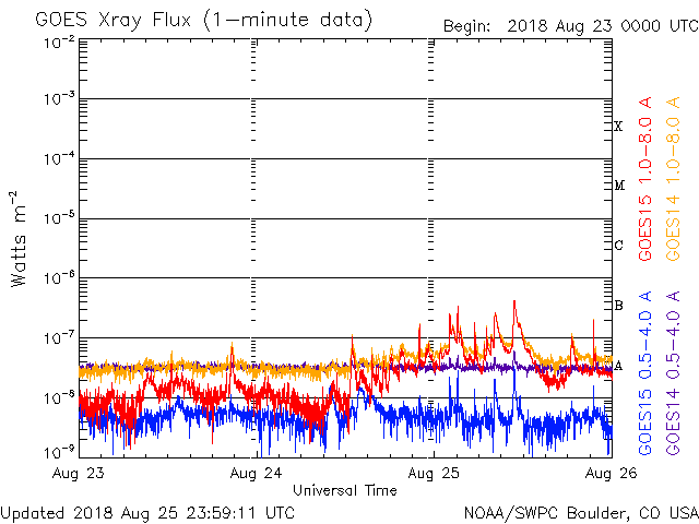 De operationele data in de bovenstaande grafiek werd aangepast om de schaalfactor te verwijderen die werd toegepast door het Space Weather Prediction Center (SWPC). Vanwege de SWPC-schaalfactor in de operationele data werden de zonnevlammen 42% kleiner gerapporteerd dan deze in de wetenschappelijke data. De schaalfactor werd ook verwijderd uit de lijst met zonnevlammen om de werkelijke fysieke eenheden weer te geven.