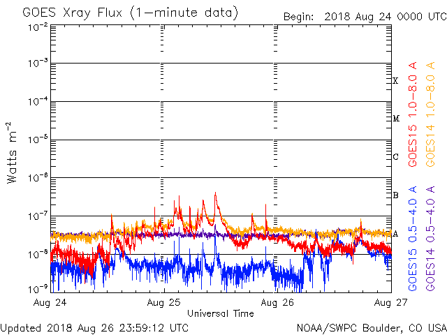 De operationele data in de bovenstaande grafiek werd aangepast om de schaalfactor te verwijderen die werd toegepast door het Space Weather Prediction Center (SWPC). Vanwege de SWPC-schaalfactor in de operationele data werden de zonnevlammen 42% kleiner gerapporteerd dan deze in de wetenschappelijke data. De schaalfactor werd ook verwijderd uit de lijst met zonnevlammen om de werkelijke fysieke eenheden weer te geven.