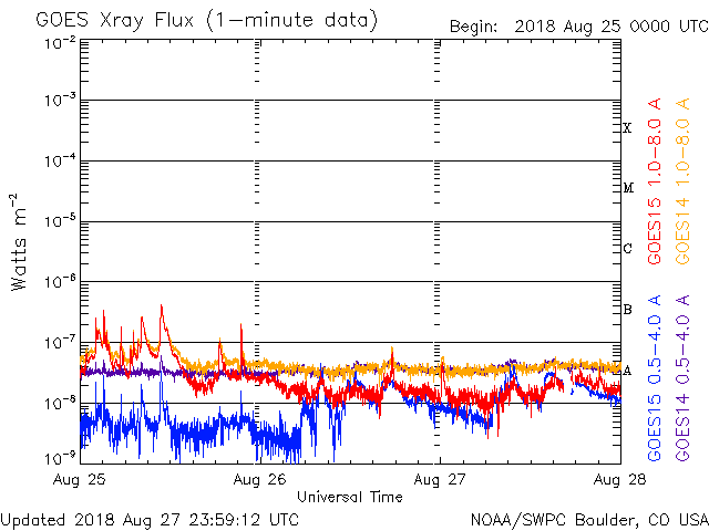 De operationele data in de bovenstaande grafiek werd aangepast om de schaalfactor te verwijderen die werd toegepast door het Space Weather Prediction Center (SWPC). Vanwege de SWPC-schaalfactor in de operationele data werden de zonnevlammen 42% kleiner gerapporteerd dan deze in de wetenschappelijke data. De schaalfactor werd ook verwijderd uit de lijst met zonnevlammen om de werkelijke fysieke eenheden weer te geven.