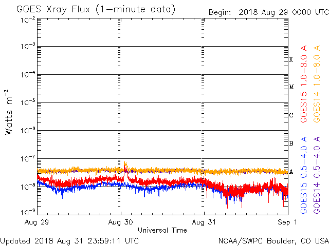 De operationele data in de bovenstaande grafiek werd aangepast om de schaalfactor te verwijderen die werd toegepast door het Space Weather Prediction Center (SWPC). Vanwege de SWPC-schaalfactor in de operationele data werden de zonnevlammen 42% kleiner gerapporteerd dan deze in de wetenschappelijke data. De schaalfactor werd ook verwijderd uit de lijst met zonnevlammen om de werkelijke fysieke eenheden weer te geven.