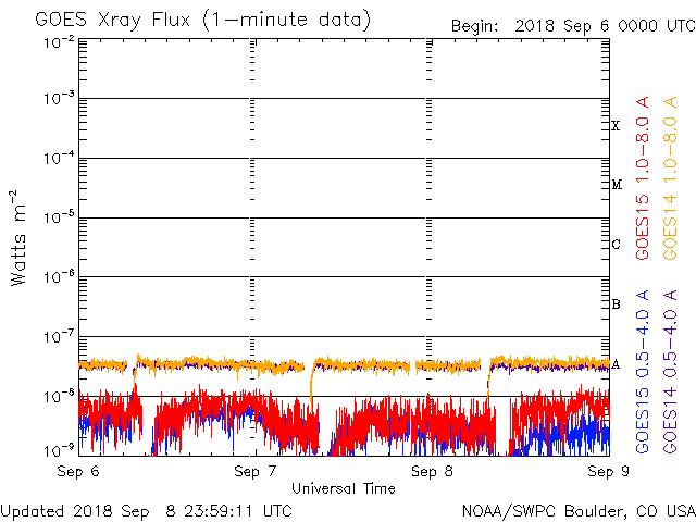 De operationele data in de bovenstaande grafiek werd aangepast om de schaalfactor te verwijderen die werd toegepast door het Space Weather Prediction Center (SWPC). Vanwege de SWPC-schaalfactor in de operationele data werden de zonnevlammen 42% kleiner gerapporteerd dan deze in de wetenschappelijke data. De schaalfactor werd ook verwijderd uit de lijst met zonnevlammen om de werkelijke fysieke eenheden weer te geven.