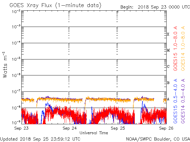 De operationele data in de bovenstaande grafiek werd aangepast om de schaalfactor te verwijderen die werd toegepast door het Space Weather Prediction Center (SWPC). Vanwege de SWPC-schaalfactor in de operationele data werden de zonnevlammen 42% kleiner gerapporteerd dan deze in de wetenschappelijke data. De schaalfactor werd ook verwijderd uit de lijst met zonnevlammen om de werkelijke fysieke eenheden weer te geven.