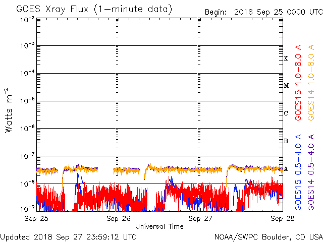 De operationele data in de bovenstaande grafiek werd aangepast om de schaalfactor te verwijderen die werd toegepast door het Space Weather Prediction Center (SWPC). Vanwege de SWPC-schaalfactor in de operationele data werden de zonnevlammen 42% kleiner gerapporteerd dan deze in de wetenschappelijke data. De schaalfactor werd ook verwijderd uit de lijst met zonnevlammen om de werkelijke fysieke eenheden weer te geven.