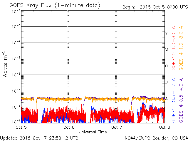 De operationele data in de bovenstaande grafiek werd aangepast om de schaalfactor te verwijderen die werd toegepast door het Space Weather Prediction Center (SWPC). Vanwege de SWPC-schaalfactor in de operationele data werden de zonnevlammen 42% kleiner gerapporteerd dan deze in de wetenschappelijke data. De schaalfactor werd ook verwijderd uit de lijst met zonnevlammen om de werkelijke fysieke eenheden weer te geven.