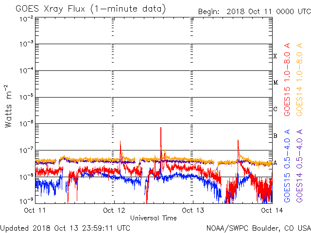 De operationele data in de bovenstaande grafiek werd aangepast om de schaalfactor te verwijderen die werd toegepast door het Space Weather Prediction Center (SWPC). Vanwege de SWPC-schaalfactor in de operationele data werden de zonnevlammen 42% kleiner gerapporteerd dan deze in de wetenschappelijke data. De schaalfactor werd ook verwijderd uit de lijst met zonnevlammen om de werkelijke fysieke eenheden weer te geven.