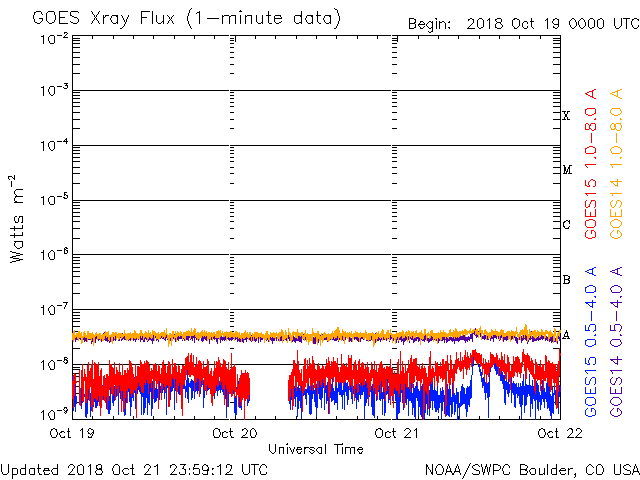 De operationele data in de bovenstaande grafiek werd aangepast om de schaalfactor te verwijderen die werd toegepast door het Space Weather Prediction Center (SWPC). Vanwege de SWPC-schaalfactor in de operationele data werden de zonnevlammen 42% kleiner gerapporteerd dan deze in de wetenschappelijke data. De schaalfactor werd ook verwijderd uit de lijst met zonnevlammen om de werkelijke fysieke eenheden weer te geven.