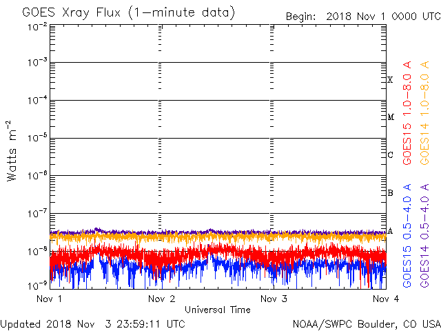 De operationele data in de bovenstaande grafiek werd aangepast om de schaalfactor te verwijderen die werd toegepast door het Space Weather Prediction Center (SWPC). Vanwege de SWPC-schaalfactor in de operationele data werden de zonnevlammen 42% kleiner gerapporteerd dan deze in de wetenschappelijke data. De schaalfactor werd ook verwijderd uit de lijst met zonnevlammen om de werkelijke fysieke eenheden weer te geven.