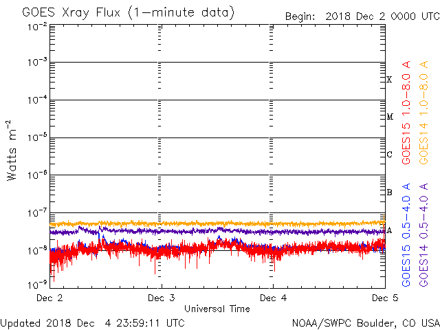 De operationele data in de bovenstaande grafiek werd aangepast om de schaalfactor te verwijderen die werd toegepast door het Space Weather Prediction Center (SWPC). Vanwege de SWPC-schaalfactor in de operationele data werden de zonnevlammen 42% kleiner gerapporteerd dan deze in de wetenschappelijke data. De schaalfactor werd ook verwijderd uit de lijst met zonnevlammen om de werkelijke fysieke eenheden weer te geven.