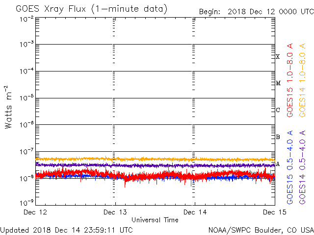 De operationele data in de bovenstaande grafiek werd aangepast om de schaalfactor te verwijderen die werd toegepast door het Space Weather Prediction Center (SWPC). Vanwege de SWPC-schaalfactor in de operationele data werden de zonnevlammen 42% kleiner gerapporteerd dan deze in de wetenschappelijke data. De schaalfactor werd ook verwijderd uit de lijst met zonnevlammen om de werkelijke fysieke eenheden weer te geven.
