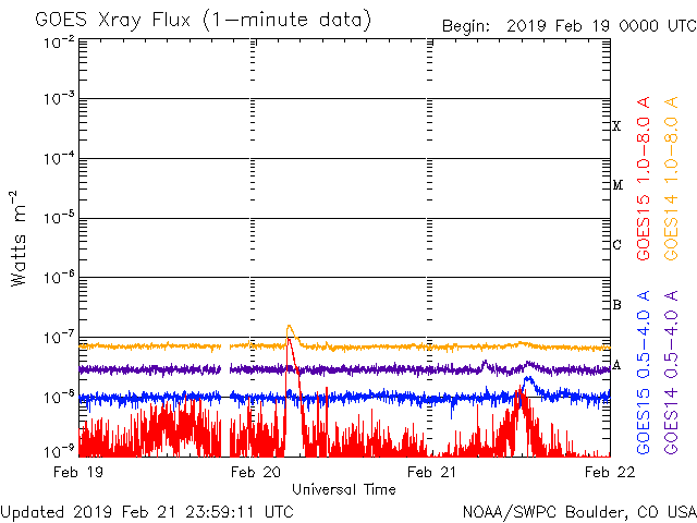 De operationele data in de bovenstaande grafiek werd aangepast om de schaalfactor te verwijderen die werd toegepast door het Space Weather Prediction Center (SWPC). Vanwege de SWPC-schaalfactor in de operationele data werden de zonnevlammen 42% kleiner gerapporteerd dan deze in de wetenschappelijke data. De schaalfactor werd ook verwijderd uit de lijst met zonnevlammen om de werkelijke fysieke eenheden weer te geven.