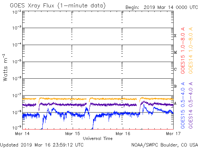 De operationele data in de bovenstaande grafiek werd aangepast om de schaalfactor te verwijderen die werd toegepast door het Space Weather Prediction Center (SWPC). Vanwege de SWPC-schaalfactor in de operationele data werden de zonnevlammen 42% kleiner gerapporteerd dan deze in de wetenschappelijke data. De schaalfactor werd ook verwijderd uit de lijst met zonnevlammen om de werkelijke fysieke eenheden weer te geven.