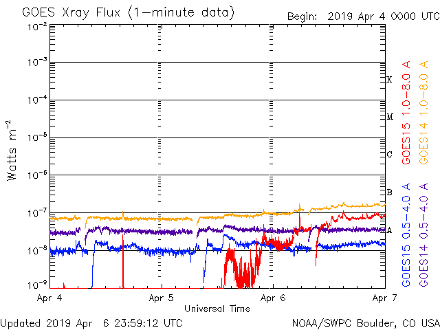De operationele data in de bovenstaande grafiek werd aangepast om de schaalfactor te verwijderen die werd toegepast door het Space Weather Prediction Center (SWPC). Vanwege de SWPC-schaalfactor in de operationele data werden de zonnevlammen 42% kleiner gerapporteerd dan deze in de wetenschappelijke data. De schaalfactor werd ook verwijderd uit de lijst met zonnevlammen om de werkelijke fysieke eenheden weer te geven.