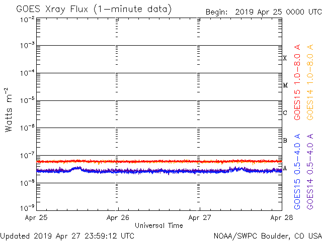 De operationele data in de bovenstaande grafiek werd aangepast om de schaalfactor te verwijderen die werd toegepast door het Space Weather Prediction Center (SWPC). Vanwege de SWPC-schaalfactor in de operationele data werden de zonnevlammen 42% kleiner gerapporteerd dan deze in de wetenschappelijke data. De schaalfactor werd ook verwijderd uit de lijst met zonnevlammen om de werkelijke fysieke eenheden weer te geven.