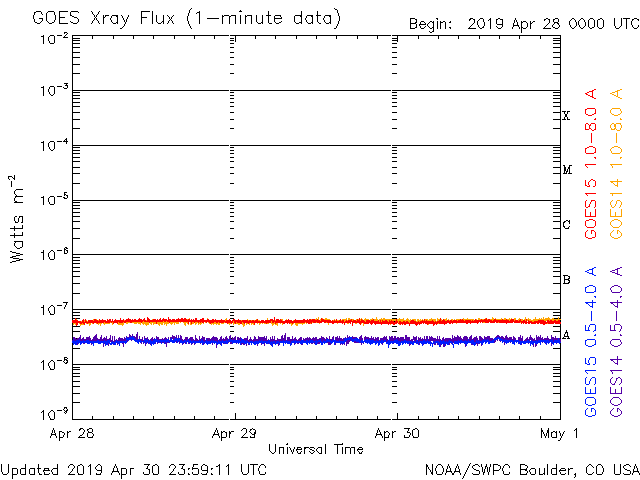 De operationele data in de bovenstaande grafiek werd aangepast om de schaalfactor te verwijderen die werd toegepast door het Space Weather Prediction Center (SWPC). Vanwege de SWPC-schaalfactor in de operationele data werden de zonnevlammen 42% kleiner gerapporteerd dan deze in de wetenschappelijke data. De schaalfactor werd ook verwijderd uit de lijst met zonnevlammen om de werkelijke fysieke eenheden weer te geven.