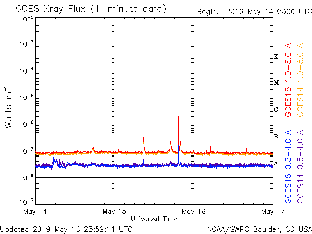 De operationele data in de bovenstaande grafiek werd aangepast om de schaalfactor te verwijderen die werd toegepast door het Space Weather Prediction Center (SWPC). Vanwege de SWPC-schaalfactor in de operationele data werden de zonnevlammen 42% kleiner gerapporteerd dan deze in de wetenschappelijke data. De schaalfactor werd ook verwijderd uit de lijst met zonnevlammen om de werkelijke fysieke eenheden weer te geven.