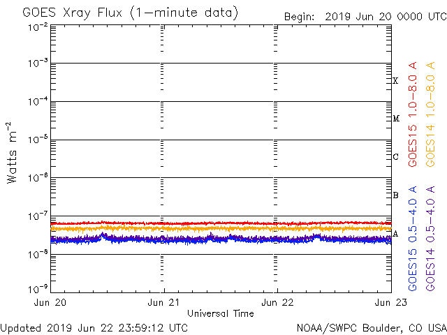 De operationele data in de bovenstaande grafiek werd aangepast om de schaalfactor te verwijderen die werd toegepast door het Space Weather Prediction Center (SWPC). Vanwege de SWPC-schaalfactor in de operationele data werden de zonnevlammen 42% kleiner gerapporteerd dan deze in de wetenschappelijke data. De schaalfactor werd ook verwijderd uit de lijst met zonnevlammen om de werkelijke fysieke eenheden weer te geven.