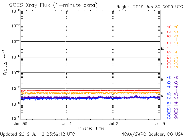 De operationele data in de bovenstaande grafiek werd aangepast om de schaalfactor te verwijderen die werd toegepast door het Space Weather Prediction Center (SWPC). Vanwege de SWPC-schaalfactor in de operationele data werden de zonnevlammen 42% kleiner gerapporteerd dan deze in de wetenschappelijke data. De schaalfactor werd ook verwijderd uit de lijst met zonnevlammen om de werkelijke fysieke eenheden weer te geven.