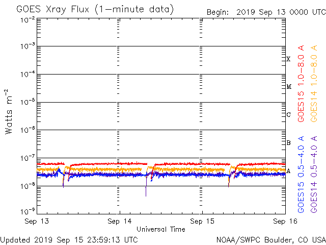 De operationele data in de bovenstaande grafiek werd aangepast om de schaalfactor te verwijderen die werd toegepast door het Space Weather Prediction Center (SWPC). Vanwege de SWPC-schaalfactor in de operationele data werden de zonnevlammen 42% kleiner gerapporteerd dan deze in de wetenschappelijke data. De schaalfactor werd ook verwijderd uit de lijst met zonnevlammen om de werkelijke fysieke eenheden weer te geven.