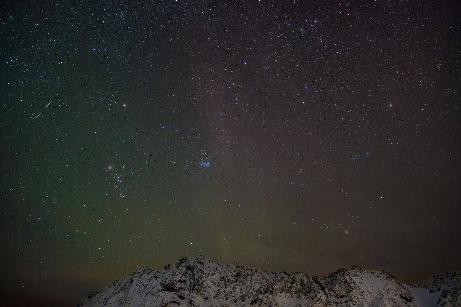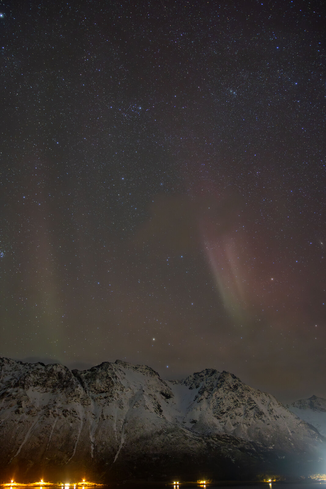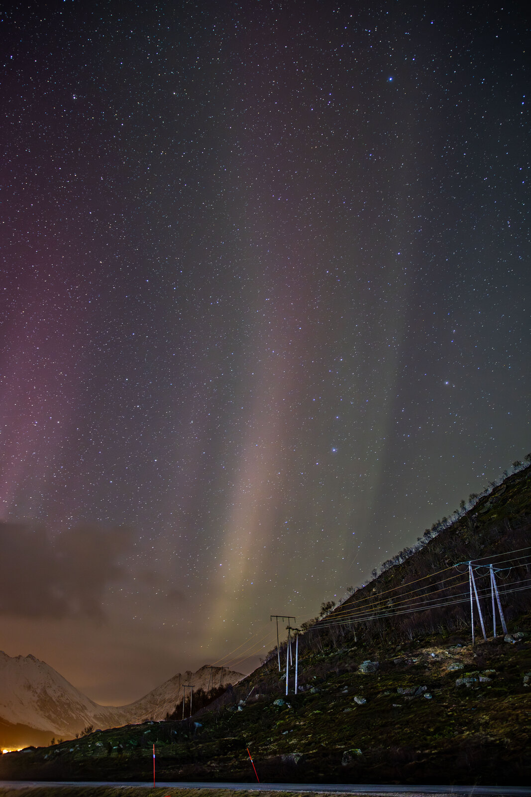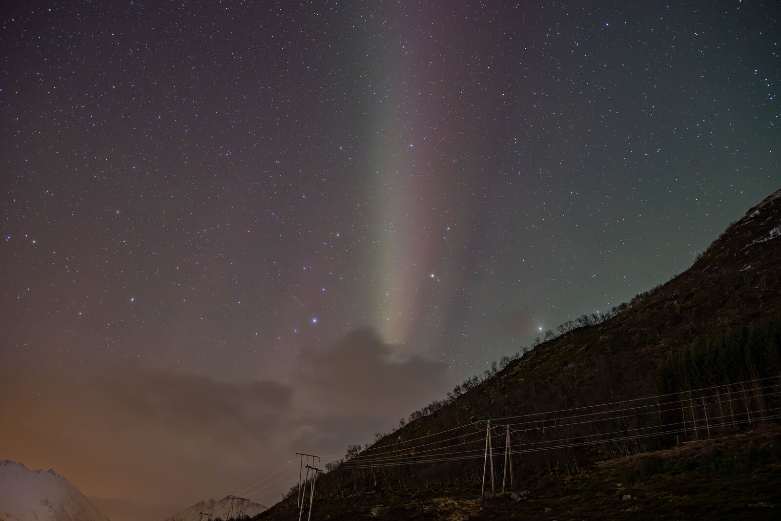 The night before was a strong storm but it was cloudy so we missed the best show, so this day it was only the remnants with only very faint aurora that wasn't really seen with naked eye except for the big white streamer.