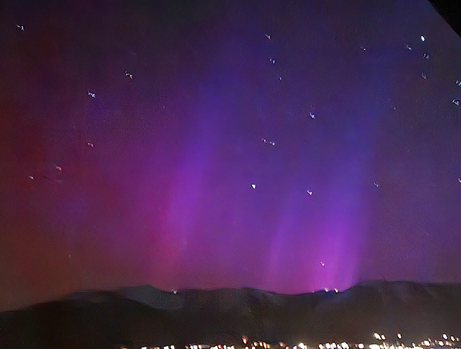 Observed tall pillars and slight color by eye prior to photographing with Android cell phone.