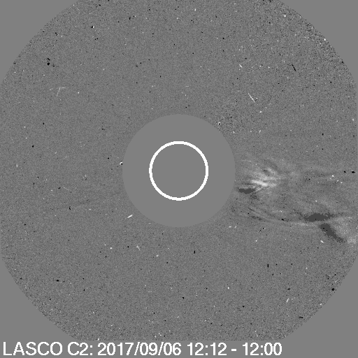 Animatie: Verschilbeelden van SOHO/LASCO van een coronale massa uitstoot in 2017.