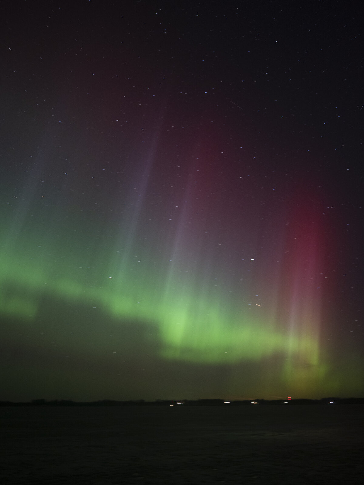 | Visibilidade da aurora | Auroras cobrindo metade do céu |