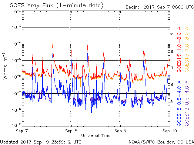 Оперативные данные выше были модифицированы, чтобы убрать масштабирующий фактор, который был применен SWPC (Центр предсказания космической погоды). Из-за этого фактора индексы вспышек в оперативных данных были занижены на 42% относительно научных данных. Масштабирующий фактор был так же убран из списка солнечных вспышек, чтобы отображать реальные величины.