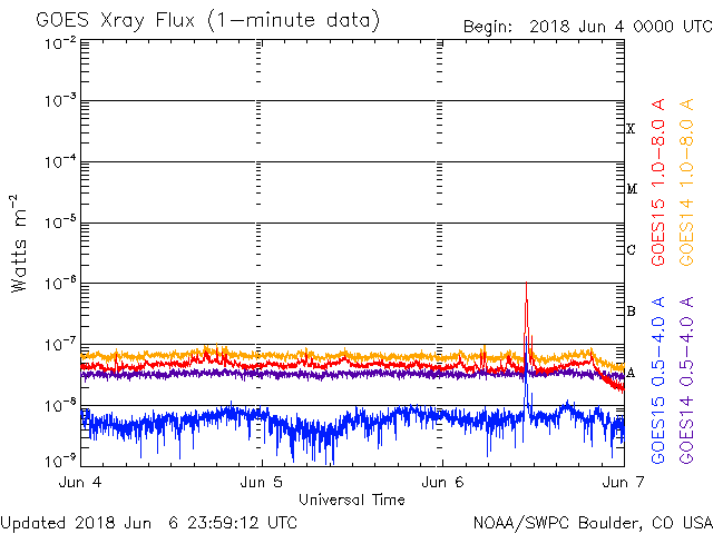Оперативні дані на графіку вище були змінені, щоб видалити масштабний коефіцієнт, який був застосований Центром прогнозування космічної погоди (SWPC). Через масштабний коефіцієнт SWPC в оперативних даних, індекси спалахів для оперативних даних були на 42% меншими, ніж для даних наукової якості. Масштабуючий коефіцієнт також було вилучено зі списку сонячних спалахів, щоб відобразити справжні фізичні одиниці.